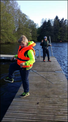 Ug testade fiskelyckan vid Nedrlösabadet i Normlösa. Nu gick det det inte så bra, storfångsterna uteblev men alla hade en trevlig kväll i fint väder och den grillade korven smakade jättebra.