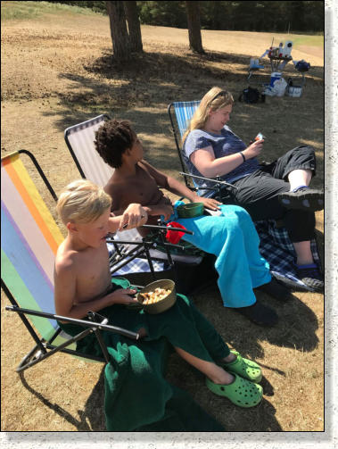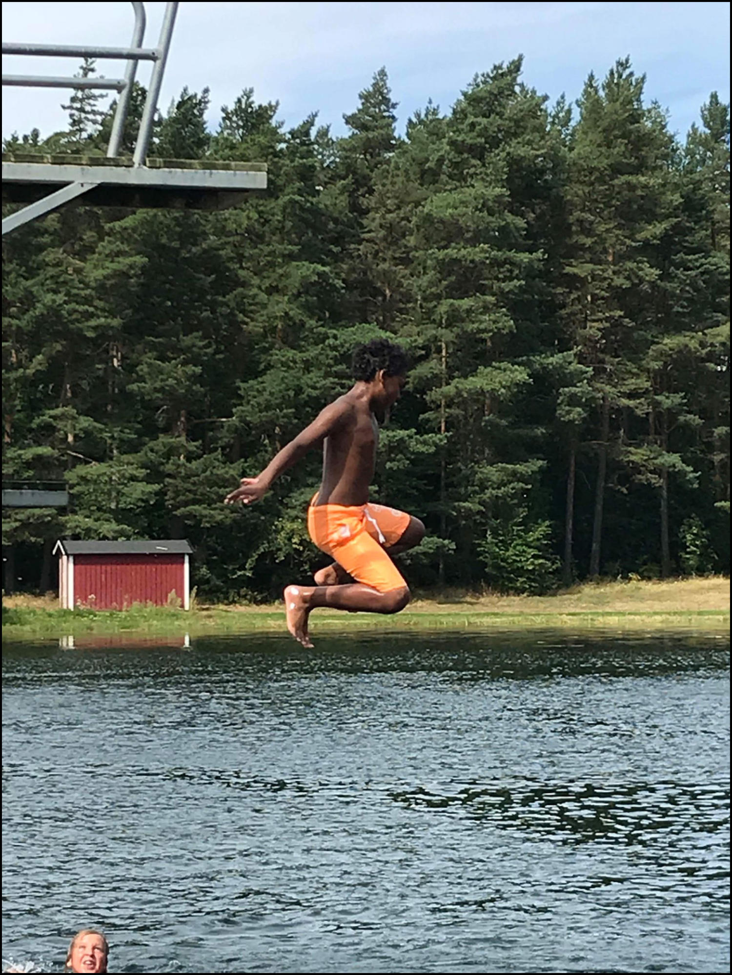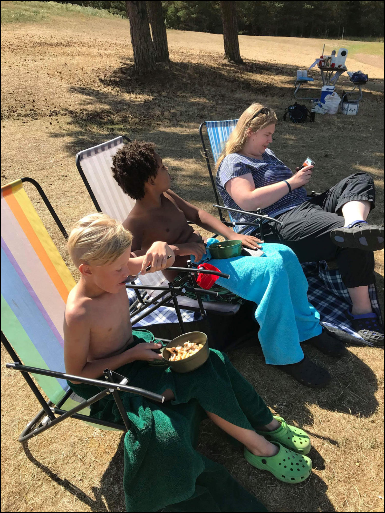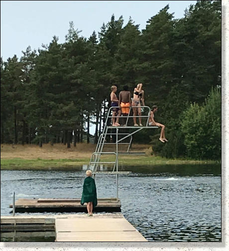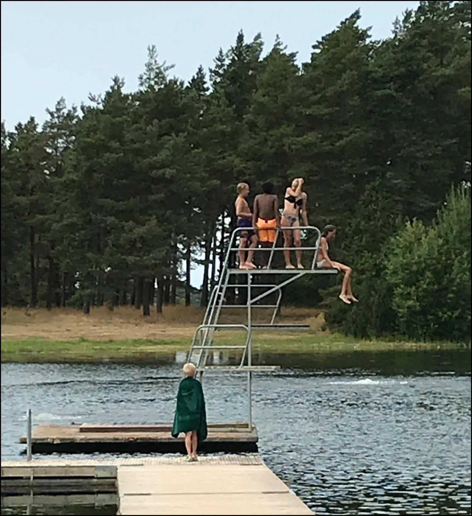 Den 6 augusti 2018 tillbringade UG en hel dag på Väderkvarnsbacken i Skänninge. Det var bad som stod på schemat, men även fotboll och wolleyboll hanns med. Ingrid hade fixat pastasallad till lunch, vilken intogs med välbehag. Det var en av de jättevarma dagarna den här sommaren så mesta tiden tillbringades i vattnet.