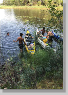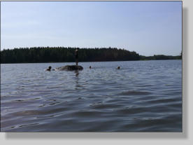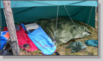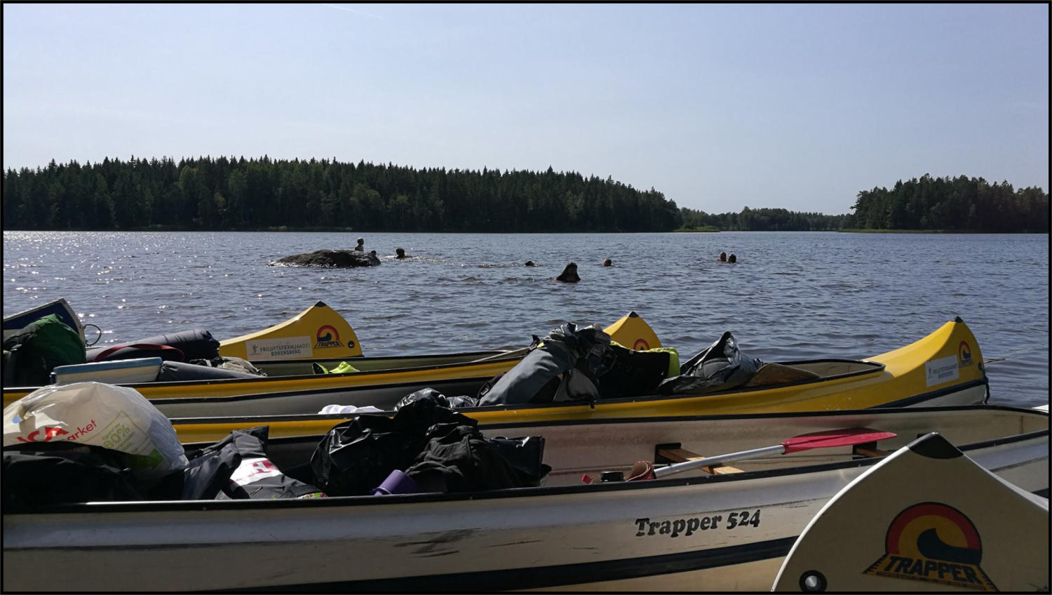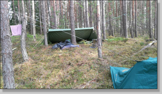 Vi sov under vindskydd, och några sov i tält. Efter frukost på morgonen blev det paddling igen. Mera bad och lunch innan vi vände