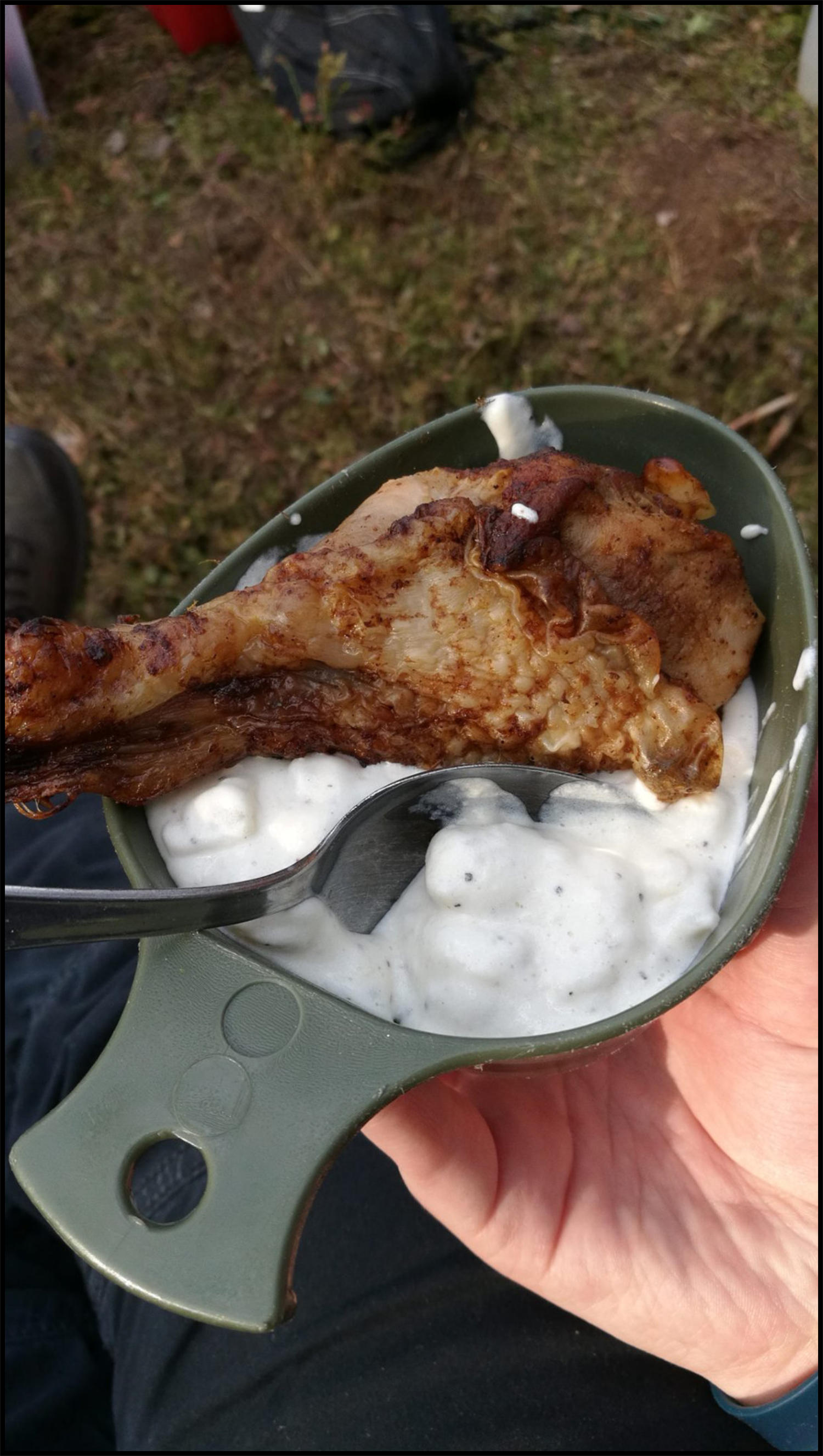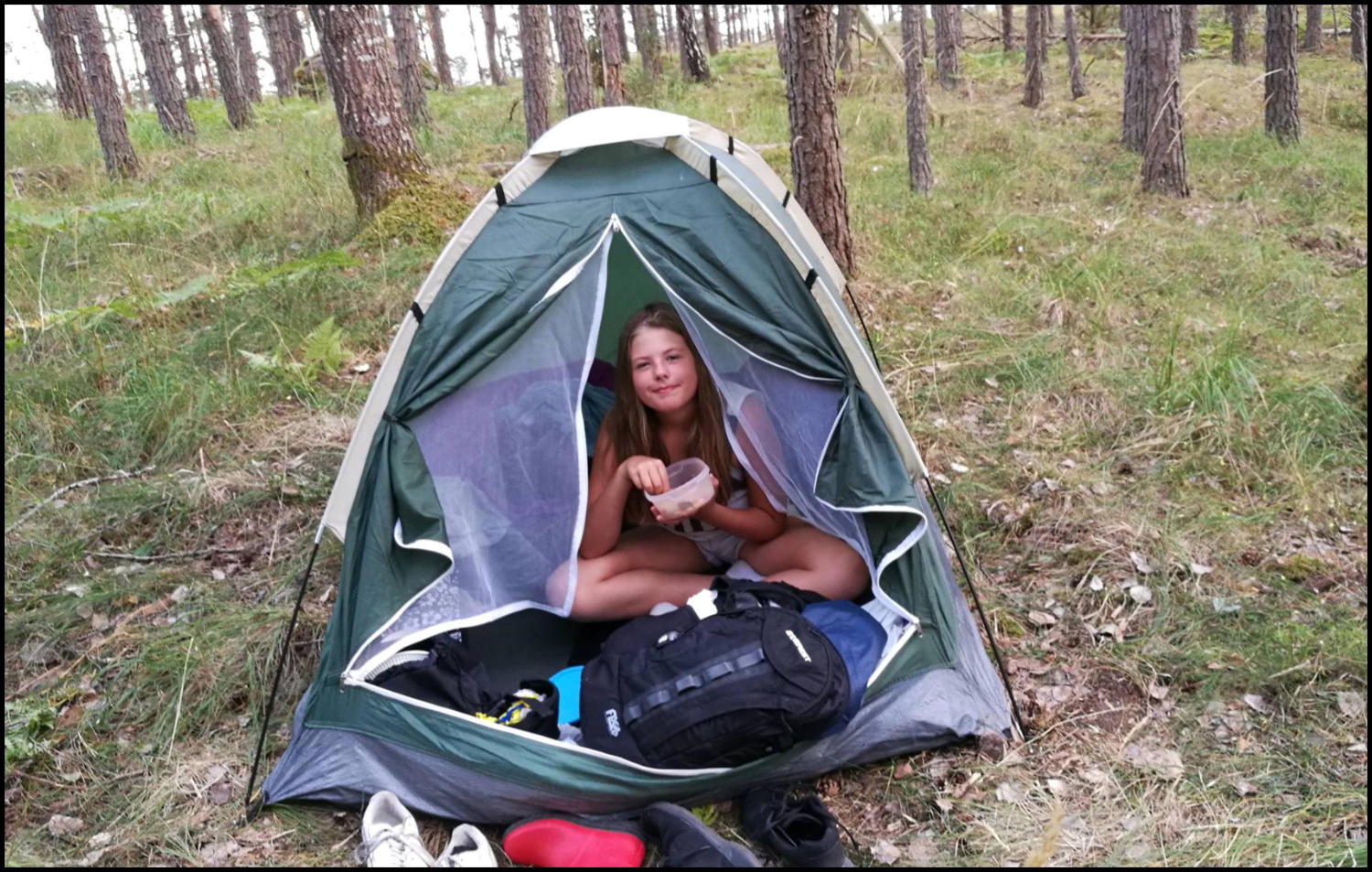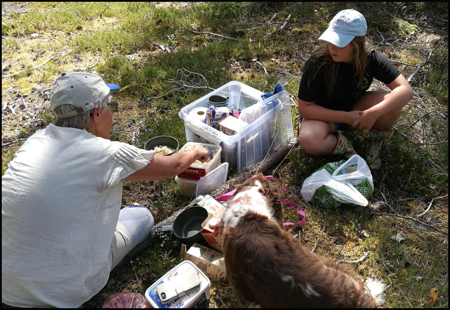 På grund av eldningsförbud fick vi ha med oss färdiglagad mat i kylväskor som Ingrid Hallendorff lagat till i förväg.