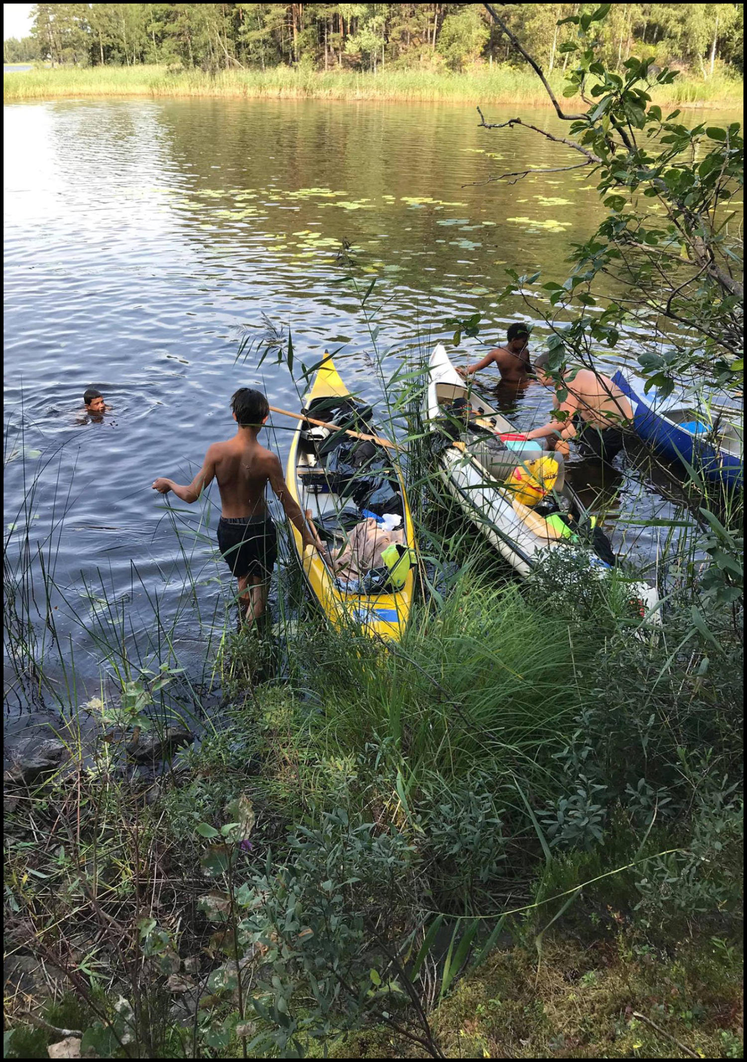 Det blev ett lyckat kanotläger! Ungdomarna badade, paddlade kanot, gjorde massor barkbåtar, kastade kottar, umgicks med