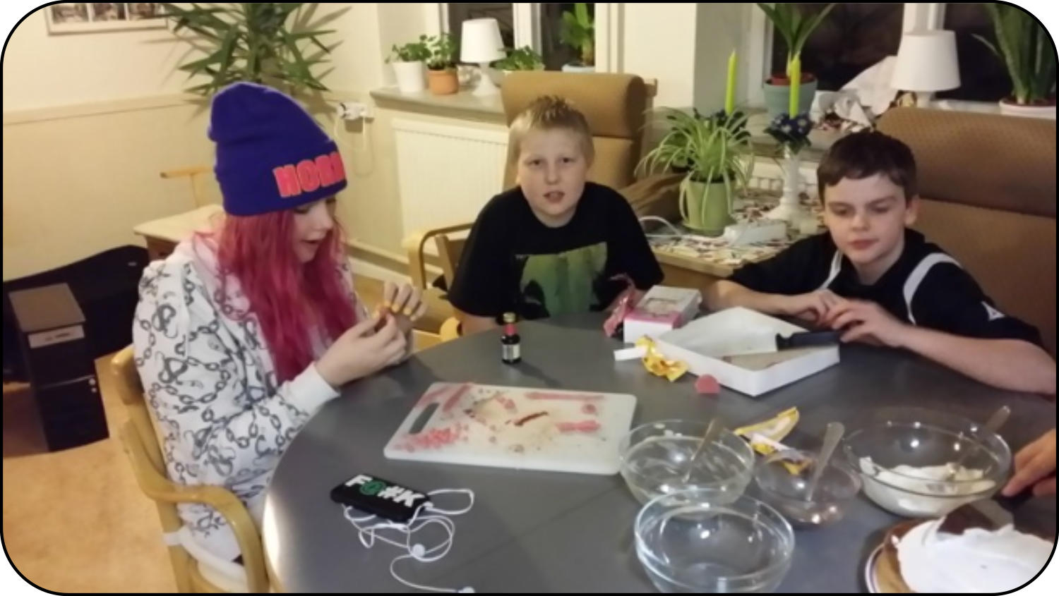 En kväll anordnades en tårttävling, där ungdomarna delades in i tre grupper och fick göra varsin