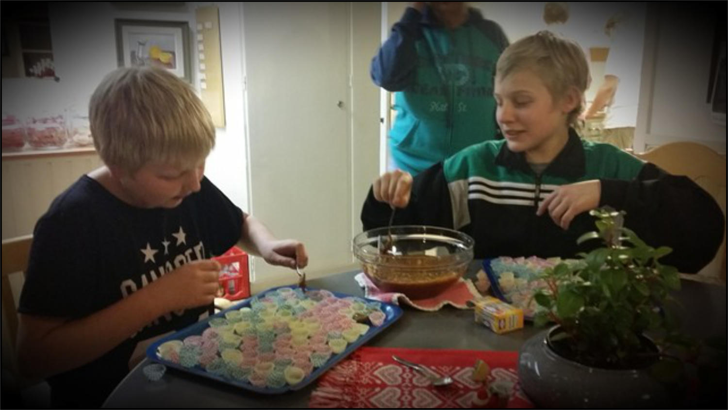 Måndagen den 8:e dec. 2014 var det julgodiskväll på fritidsgården. Det kokades bland annat knäck och kola och chokladdoften spred sej