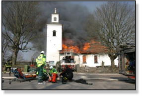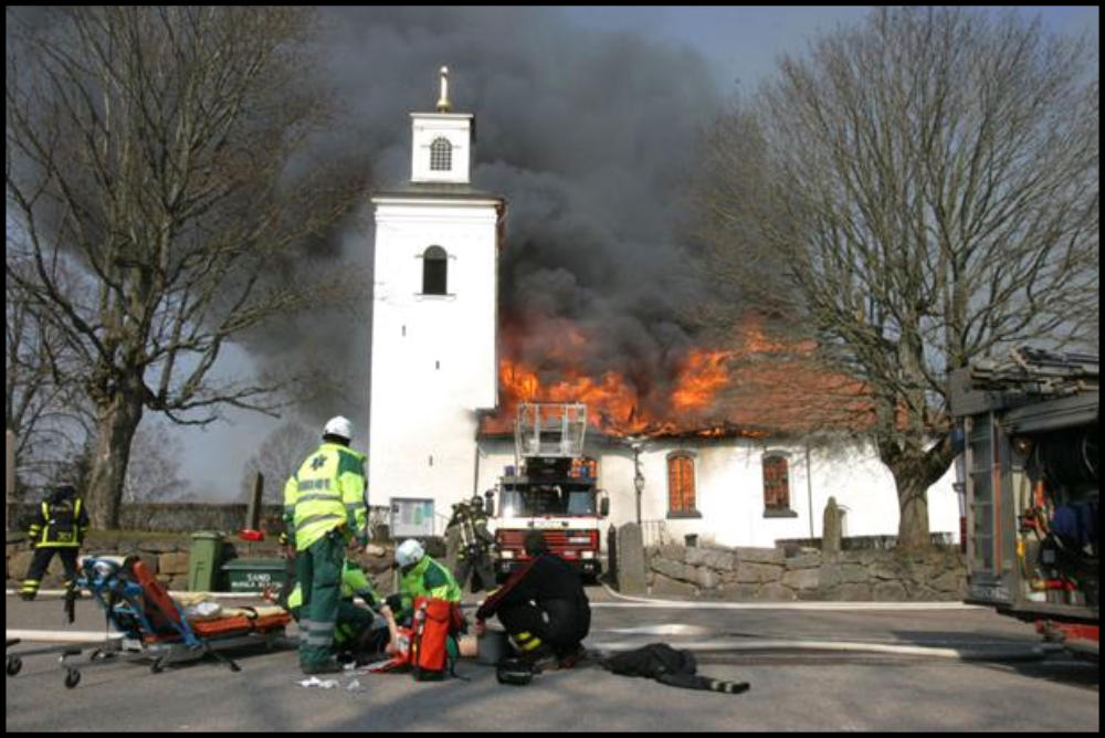 lösa inventarier räddas, man kunde bland annat rädda altartavlan, textilier och ljuskronor