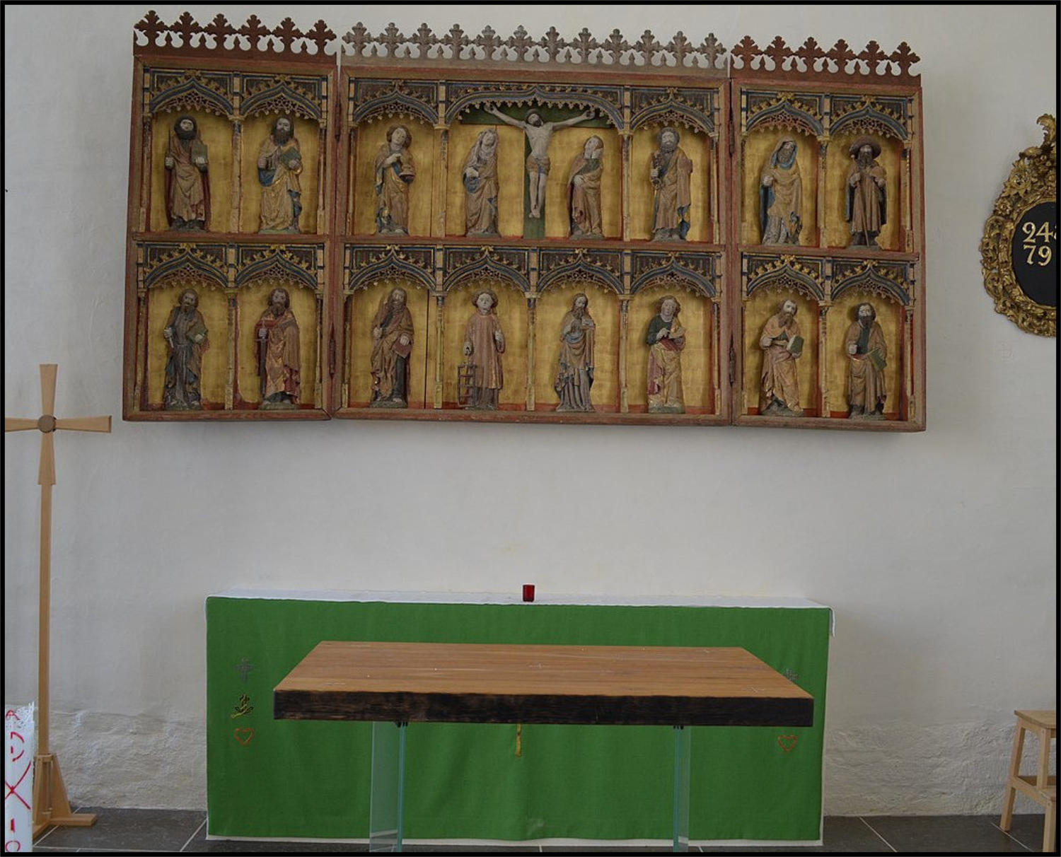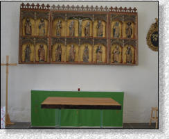 Man har med klokhet och kunskap lyckats återskapa den medeltida kyrkan, men i ett modernt snitt. Koret har vidgats mot norr där ett stort fönster ger ljus och rymd. I