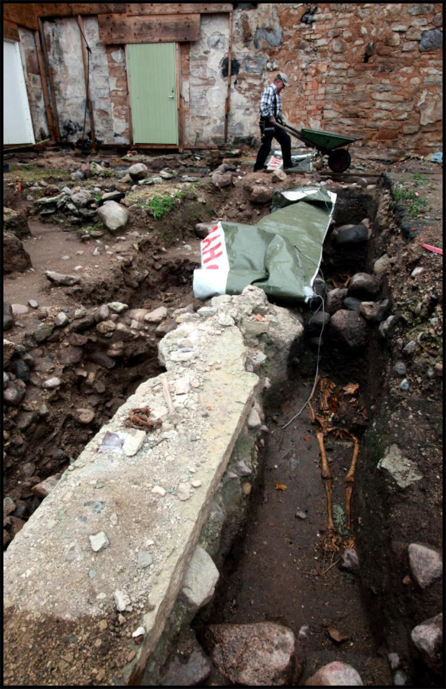Arbetet kom att hålIa på ända in i november beroende att så många lämmningar fanns under kyrkans gamla golv. Vid utgrävninqgarna