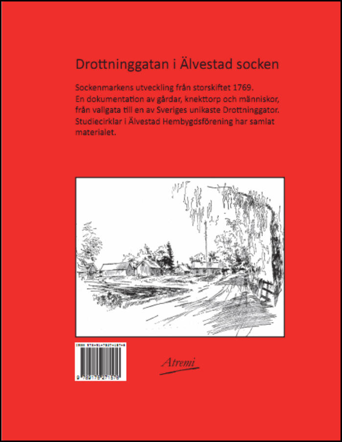 Boken är en sammanställning om Drottninggatan, gårdarna,torpen och människorna som lever och har levt där och deras historia.Tore Eriksson har gjort ett otroligt jobb med att ta fram bilder och fakta om alla fastigheter utmed Drottninggatan, som i begynnelsen faktiskt var en bred vallgata. Boken borde vara ett “måste” för alla Älvestadbor som här kan få en historisk tillbakablick på sin hemsocken.Kontakta Anders,tele 0705-395689, eller maila, om du vill köpa den, då det inte går att köpa den i bokhandeln. Pris 200:-.